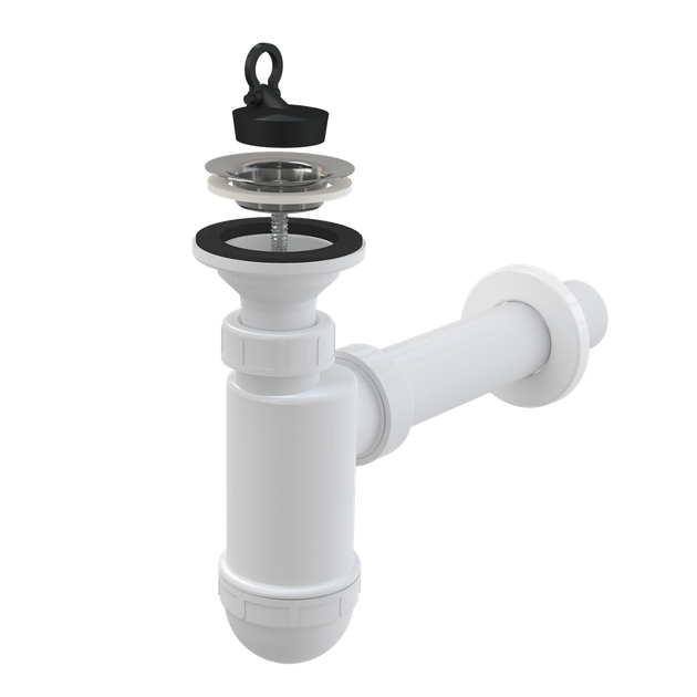 Сифон для умивальнику ALCAPLAST колбовий пластик впуск 60-63 мм випуск горизонтальний сатин А410