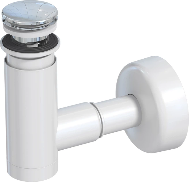 Сифон для умивальнику CERSANIT колбовий пластик впуск 1 1/4" випуск горизонтальний білий 000030341