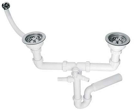 Сифон для кухонної мийки з 2 чашами McALPINE з під'єднанням до пральної машини зі зливами 113 мм і круглим переливом 1 1/2"х