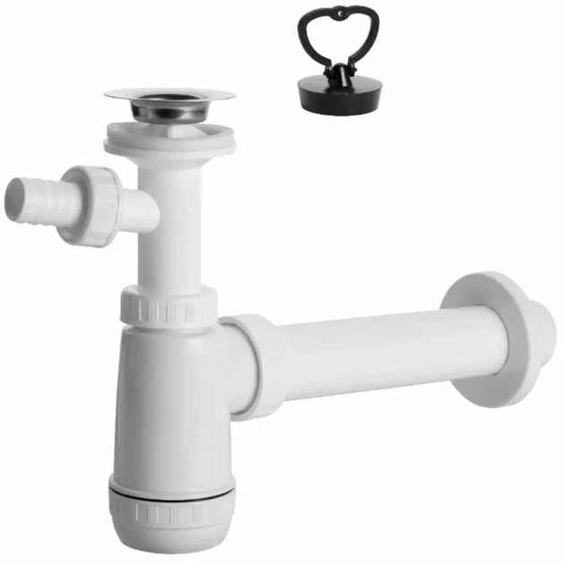 Сифон для раковини Devit DV1N332 колбовий 1 1/4" x 32 мм з накладкою і з підключенням до пральної машини