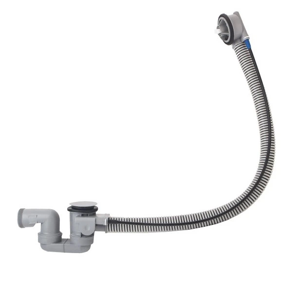 Сифон для ванни Devit DVNS14140 напівавтоматичний трубний з коліном 45° з гофрованим переливом з наповненням 610 мм