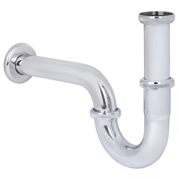 Сифон для умивальнику WEZER трубний метал впуск 1 1/4" випуск горизонтальний хром WSR-102S
