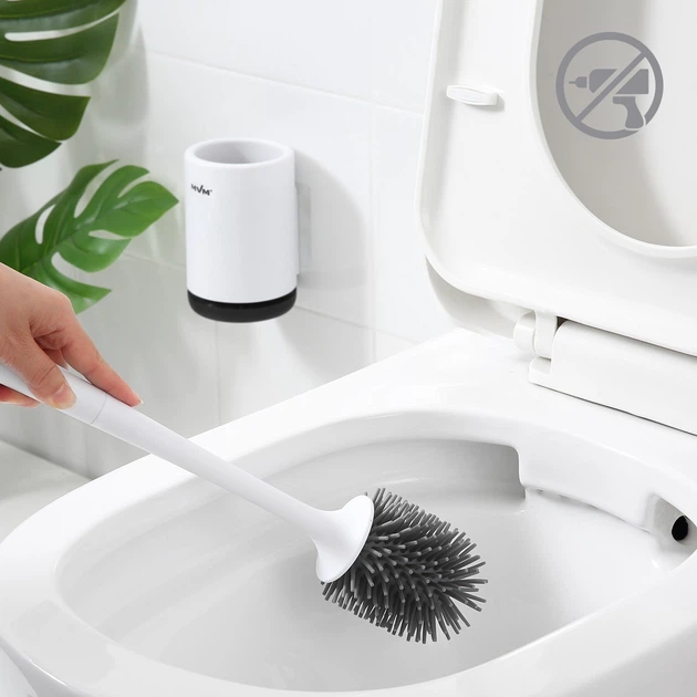 Йоржик для унітазу з силіконовою щіткою клейкий настінний MVM BP-12 WHITE/GRAY білий/сірий