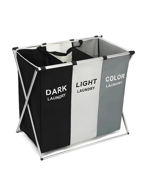 Потрійний складаний органайзер для білизни на 3 відділення текстильний кошик для прання у ванну кімнату чорно-білий (6213821