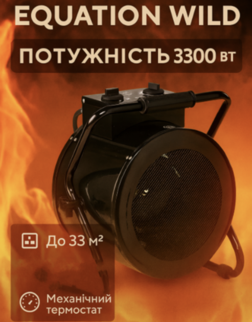 Потужний металевий обігрівач тепловентилятор Equation IRON 3300 Вт з термостатом (до 33 м2).