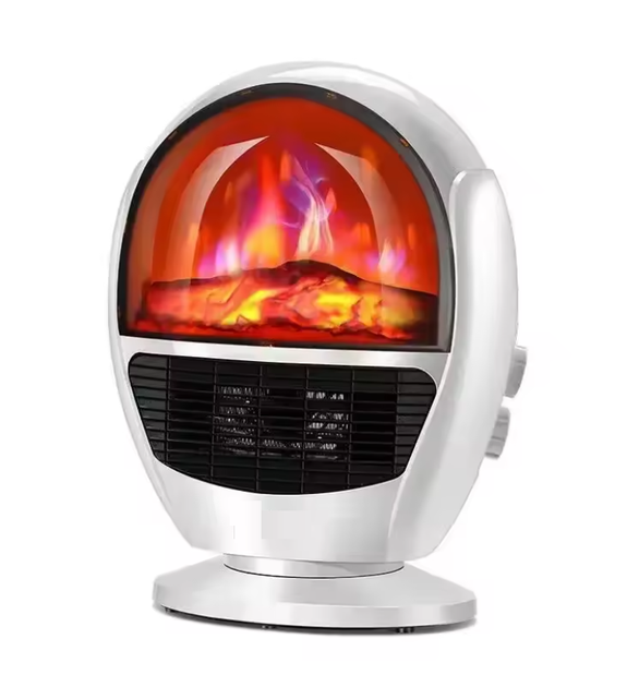 Обігрівач електричний, портативний, з LCD дисплеєм та імітація полум'я, білий