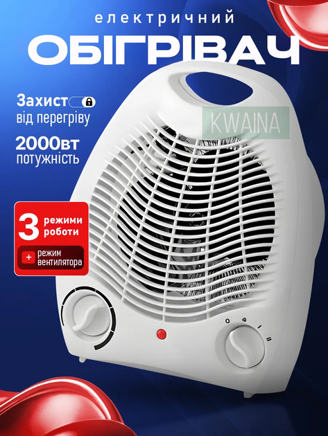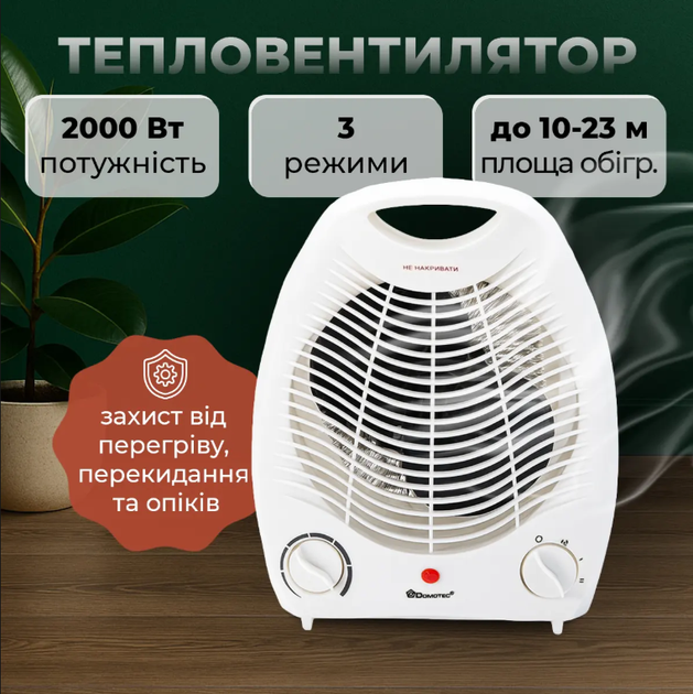 Тепловентилятор обігрівач дуйка Domotec D-2019090862 2000W Білий