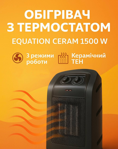Тепловентилятор - обігрівач Equation CERAM 1500 Вт з термостатом та керамічним теном Black