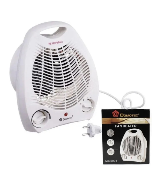 Тепловентилятор Domotec 2000Вт обігрівач-вентилятор 2в1, 3 режими роботи, захист від перегріву Білий