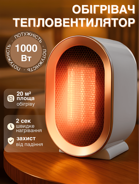 Керамічний настільний обігрівач тепловентилятор для дому та офісу електричний РТС GTM Дуйчик 1000Вт авторегулування температ