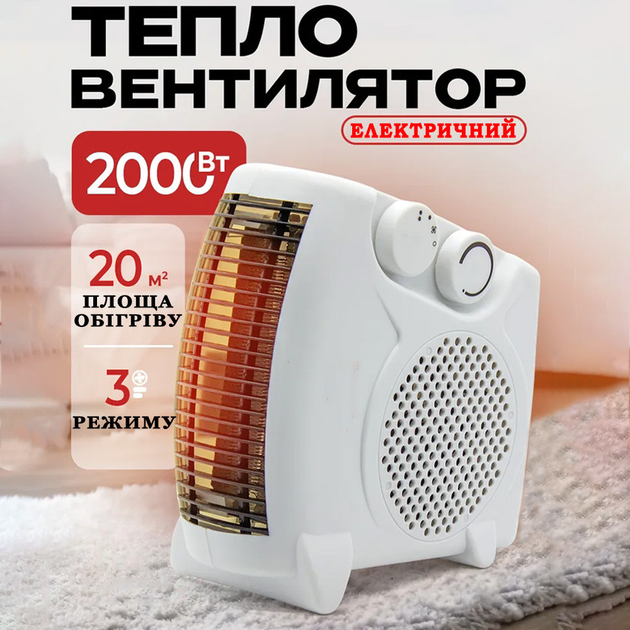 Обігрівач для будинку 1200W енергозберігаючий тепловентилятор 2 рівня потужності