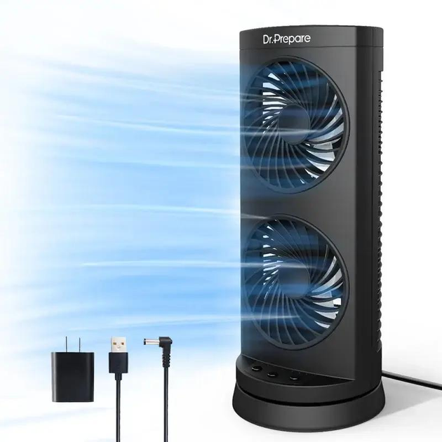 Настільний баштовий вентилятор Dr.Prepare 13" з подвійним потоком, осциляцією 110° та таймером