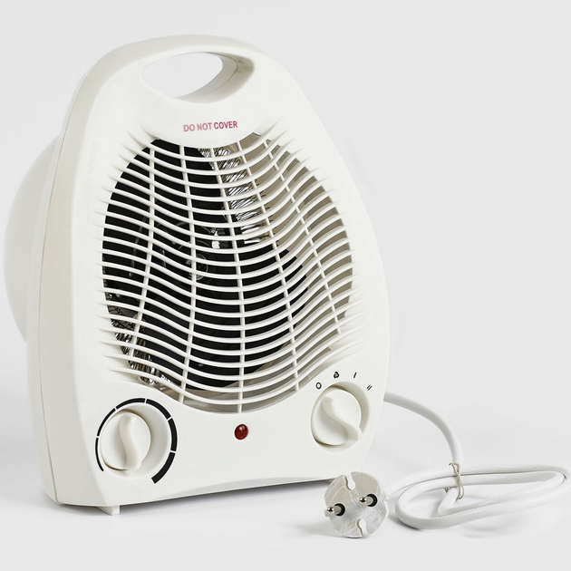 Тепловентилятор (дуйка), електричний, з регульованим термостатом, захистом від перегріву, спіральним нагрівальним елементом,