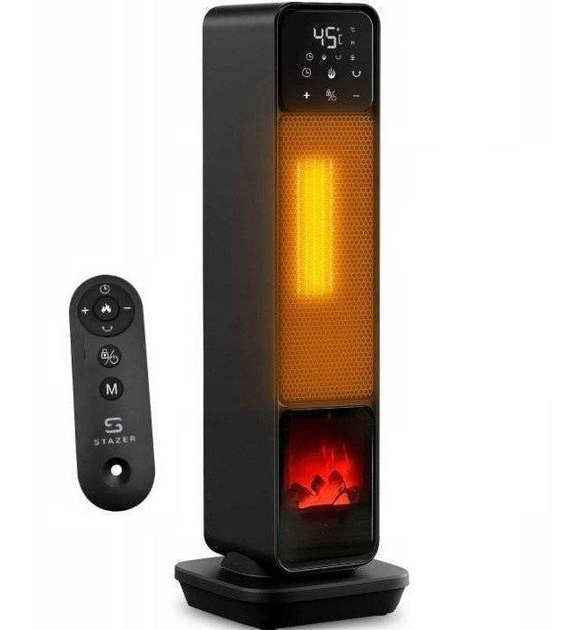 Керамічний тепловентилятор Stazer TURBOWARM 2200 Вт з пультом дистанційного керування з імітацією каміна Чорний