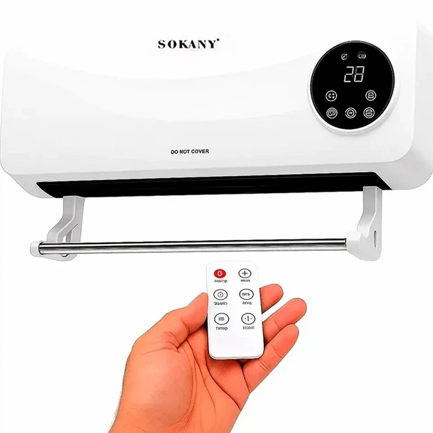 Настінний обігрівач 2000Вт із пультом та сушаркою керамічний білий SOKANY SK-18036 для кімнати 20м