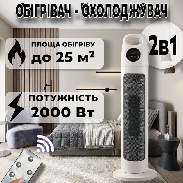 Підлоговий тепловентилятор Germatic Air Max 2 в 1 кулер/вентилятор з пультом ДК обігрівач-охолоджувач зима-літо (TL772)