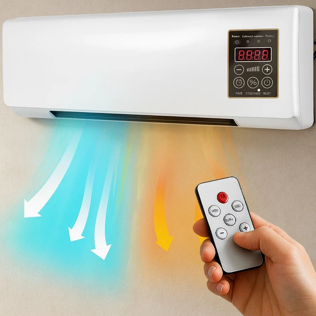 Настіннии тепловентилятор 2000W з режимом обігріву, охолодження та пультом