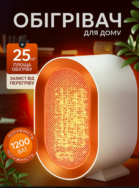Тепловентилятор електричний обігрівач 1200Вт 2 режими для дому та офісу 25м2 Yiwu