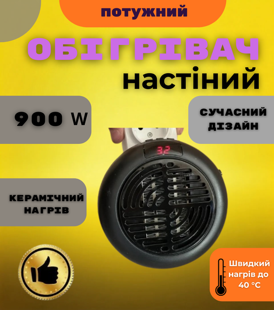 Портативний обігрівач FlyBat Electric Heater For Home 900W з дисплеєм та таймером настінний міні обігрівач для дому та офісу
