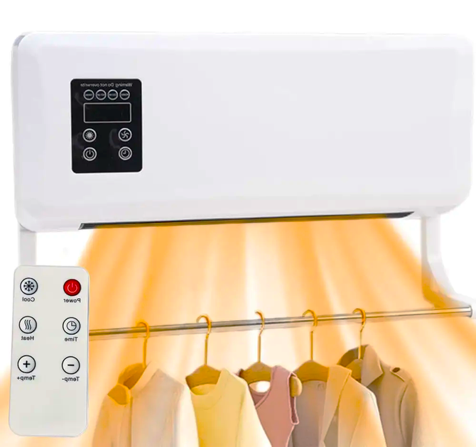 Обігрівач настінний з пультом та сушаркою для одягу 2000Вт, JZ-08W / Тепловентилятор / Сушарка (L)