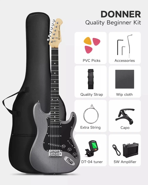 Електрогітара DONNER DST-80 Matton Black - (Комплект)