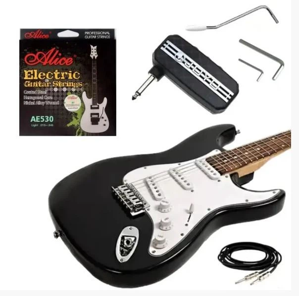 Набір електрогітара J8 ST HMG 101 ВК + Міні-підсилювач для гри в навушниках Joyo JA-03 Lead + Струни AE530 Light (Чорного ко