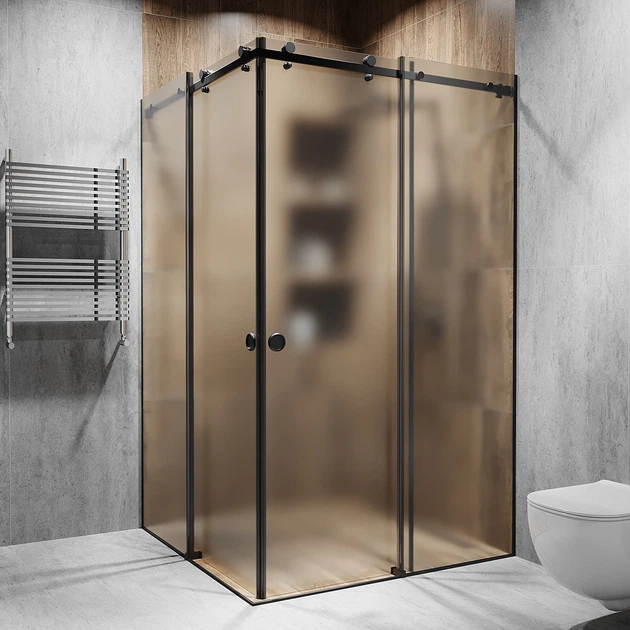 Кутова розсувна душова кабіна з двома дверима 2000 мм, Прозоре, Ні, Bronze - Бронза, 1000 мм