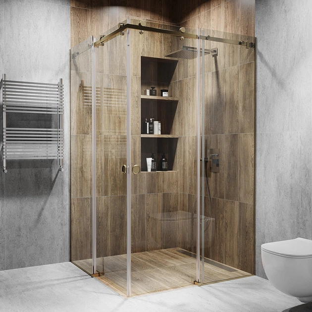 Кутова розсувна душова кабіна з двома дверима 2000 мм, Прозоре, Ні, Gold - Золото поліроване, 1200 мм