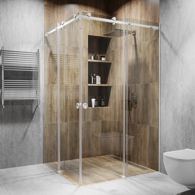 Кутова розсувна душова кабіна з двома дверима 2000 мм, Прозоре, Ні, SSS - Матова, 1000 мм