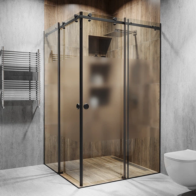 Кутова розсувна душова кабіна з двома дверима 2000 мм, Прозоре, Інтим зона, Bronze - Бронза, 900 мм