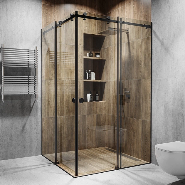 Кутова розсувна душова кабіна з двома дверима 2000 мм, Прозоре, Ні, Black - Чорна матова, 1150 мм