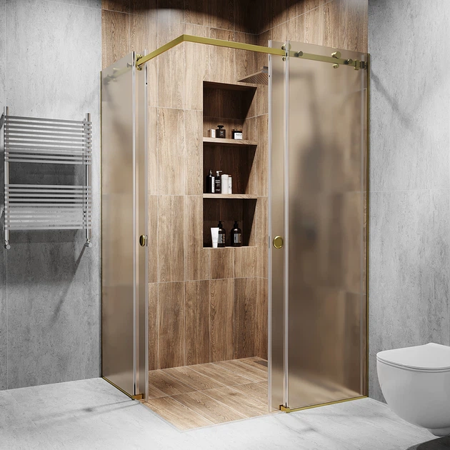 Кутова розсувна душова кабіна з двома дверима 2000 мм, Прозоре, Матоване, Gold - Золото поліроване, 1200 мм