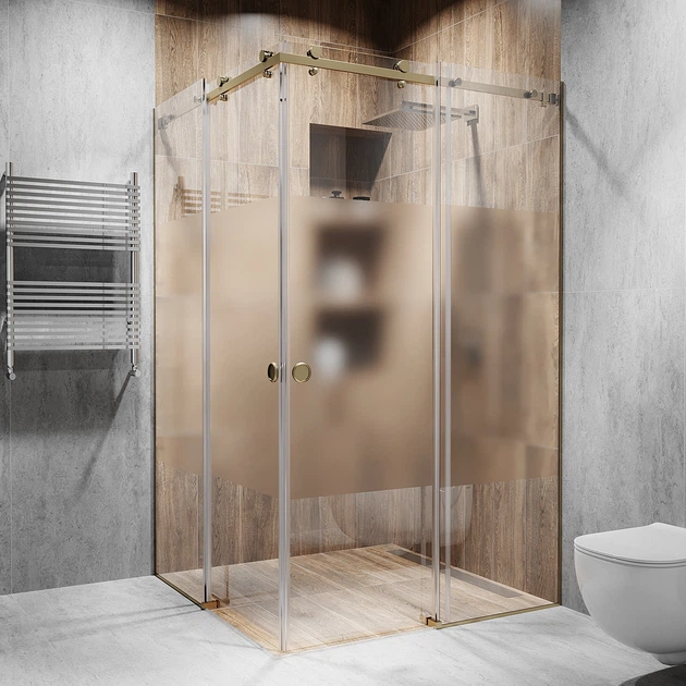 Кутова розсувна душова кабіна з двома дверима 2000 мм, Діамант, Матоване, Gold - Золото поліроване, 800 мм
