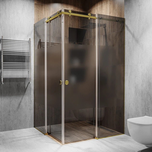 Кутова розсувна душова кабіна з двома дверима 2000 мм, Графіт, Матоване, Gold - Золото поліроване, 850 мм