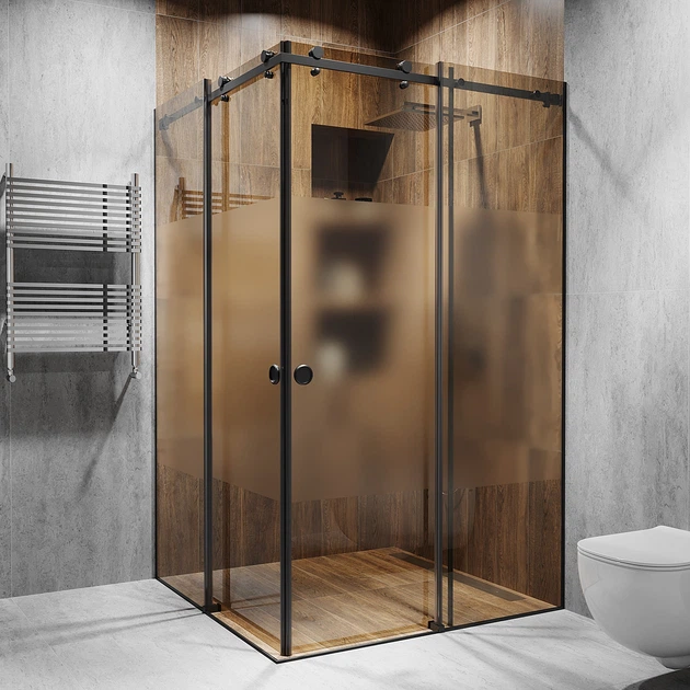 Кутова розсувна душова кабіна з двома дверима 2000 мм, Бронза, Інтим зона, Black - Чорна матова, 900 мм