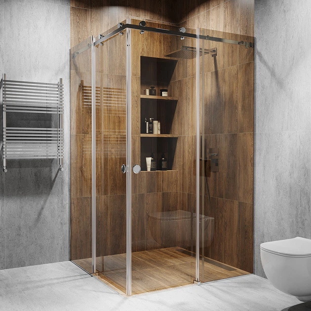 Кутова розсувна душова кабіна з двома дверима 2000 мм, Бронза, Інтим зона, SSS - Матова, 850 мм