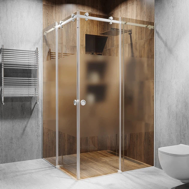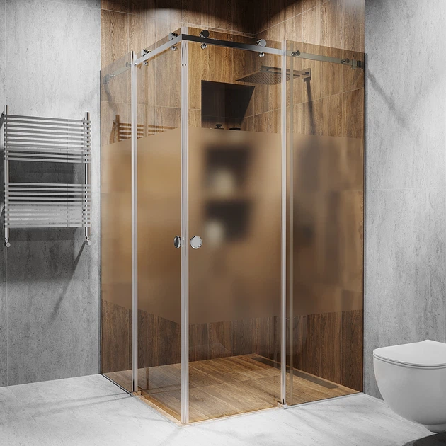 Кутова розсувна душова кабіна з двома дверима 2000 мм, Бронза, Інтим зона, SSS - Матова, 900 мм