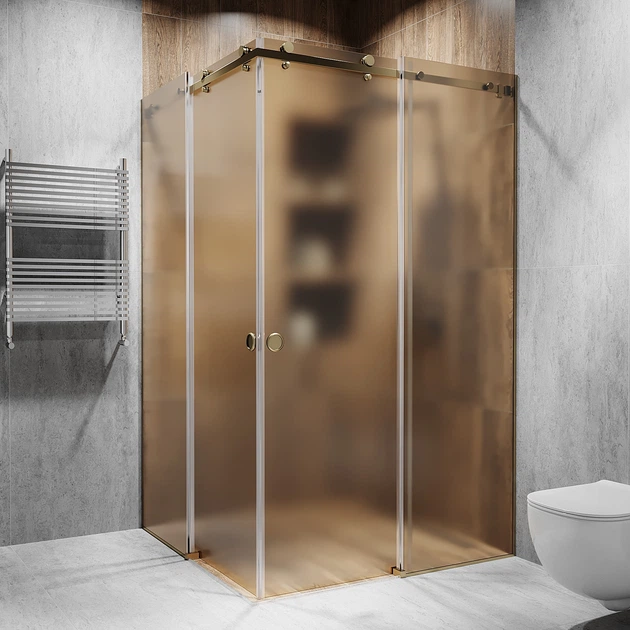 Кутова розсувна душова кабіна з двома дверима 2000 мм, Бронза, Матоване, Gold - Золото поліроване, 1150 мм