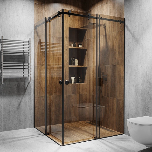 Кутова розсувна душова кабіна з двома дверима 2000 мм, Бронза, Ні, Black - Чорна матова, 900 мм
