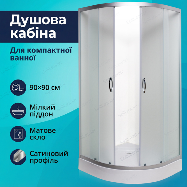 Душова кабіна Vivia 90х90x191 см кутова душовий бокс розсувні двері низький піддон кутовий матове скло