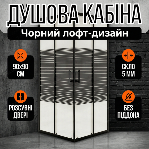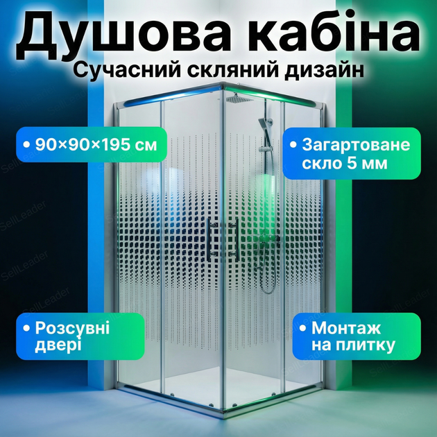 Душова кабіна 90x90х190 см квадратна Shower Saturn без піддону розсувні двері матове скло 6 мм