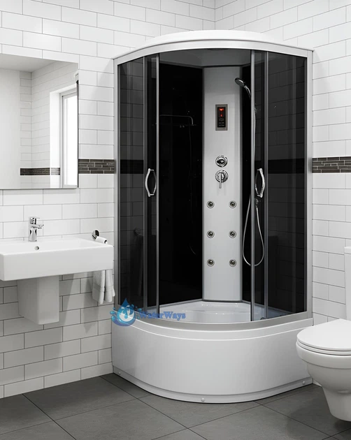 Гідромасажний бокс Ko&Po 470 90x90х210 см на глибокому піддоні з електронікою сіре скло розсувні двері