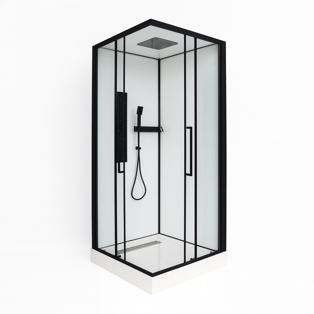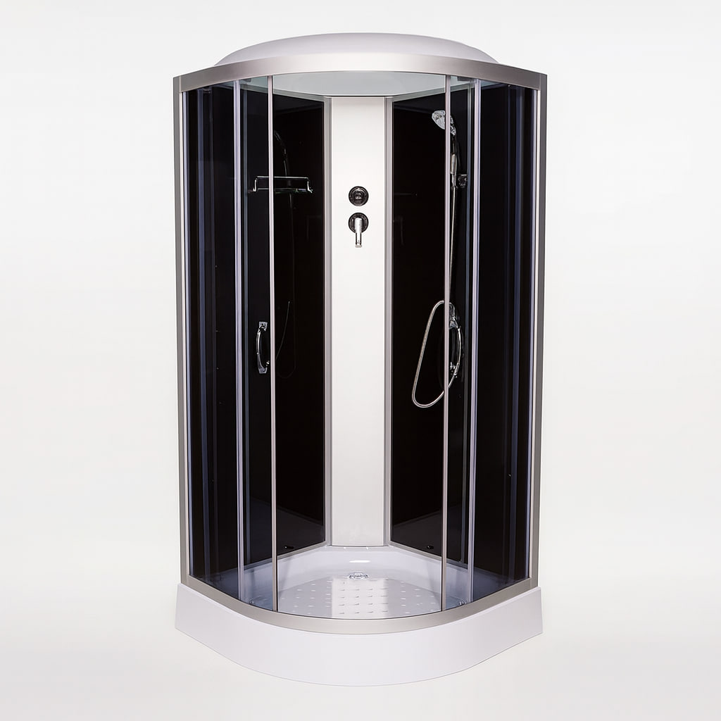 Душовий бокс Vivia Glory 61 90х90х215 см на низькому піддоні з гідромасажем тоноване скло Душовий бокс Vivia 90×90 см – сучасне і стильне рішення для ванної кімнати. Продукція Vivia виготовлена з високоякісних та екологічно безпечних матеріалів, що гарантує довговічність і комфорт у користуванні. Модель оснащена загартованим тонованим склом товщиною 4 мм і піддоном із міцного акрилу, стійкого