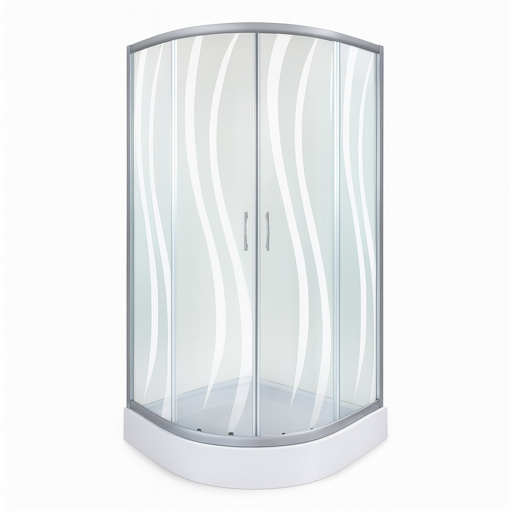 Душова кабіна KO&PO 7122-6 90х90х195 см на низькому піддоні розсувні двері матове скло з принтом хвилі