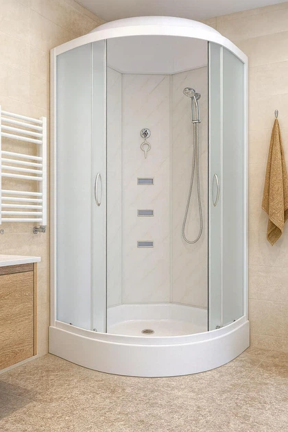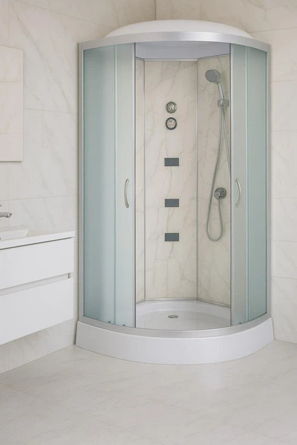 Гідромасажна кабіна TKF90/1 Білий онікс WG 90x90x215 см душовий бокс з низьким піддоном матове скло розсувні двері (А0045221