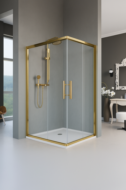Душова кабіна Aquanil Unimar 10080190 см, прямокутна, прозрачна, золотий профіль