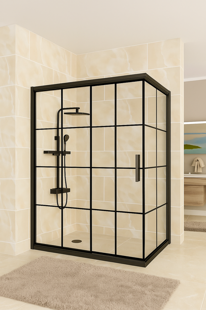 Душова кабіна Aquanil Minnesota 11090190 см, прямокутна, чорний профіль, скло сітка