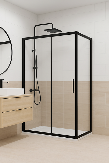 Душова кабіна Aquanil Minnesota 11080190 см, прямокутна, прозрачна, чорний профіль