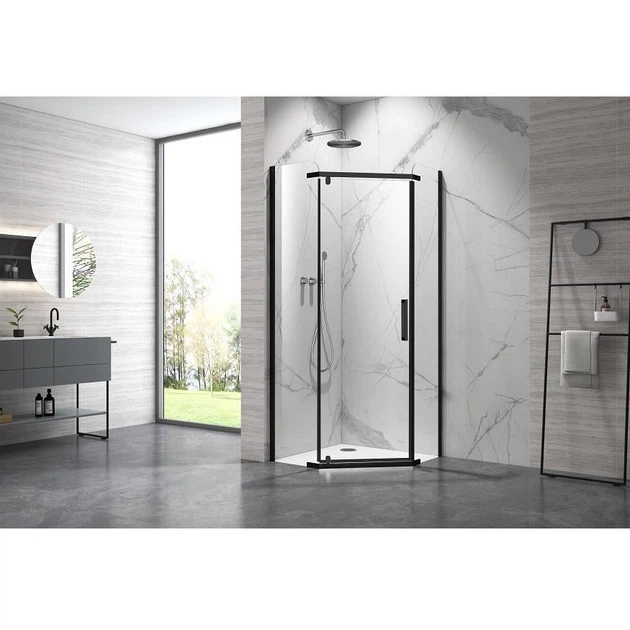 Душова кабіна п'ятикутна Verona Black з чорним профілем без піддону 90х90 см (39715)