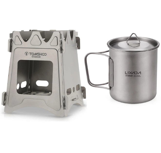 Титанова кружка з кришкою Lixada 450 мл та Титанова піч щепочниця розбірна Tomshoo titanium набір 2 в 1